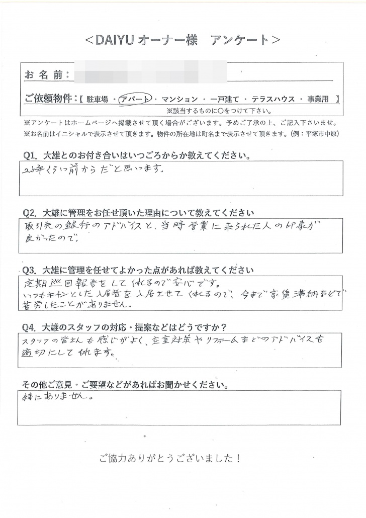 - Q.大雄に管理をお任せ頂いた理由について教えてください