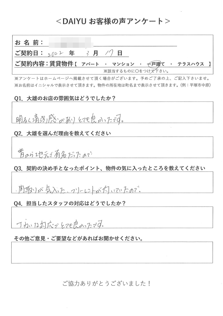 CUSTOMER'S VOICEお客様の声【賃貸物件】